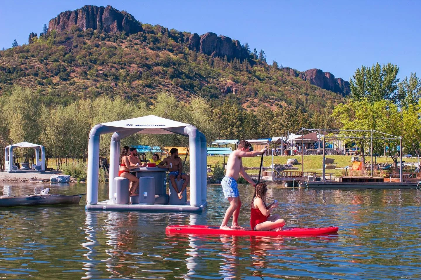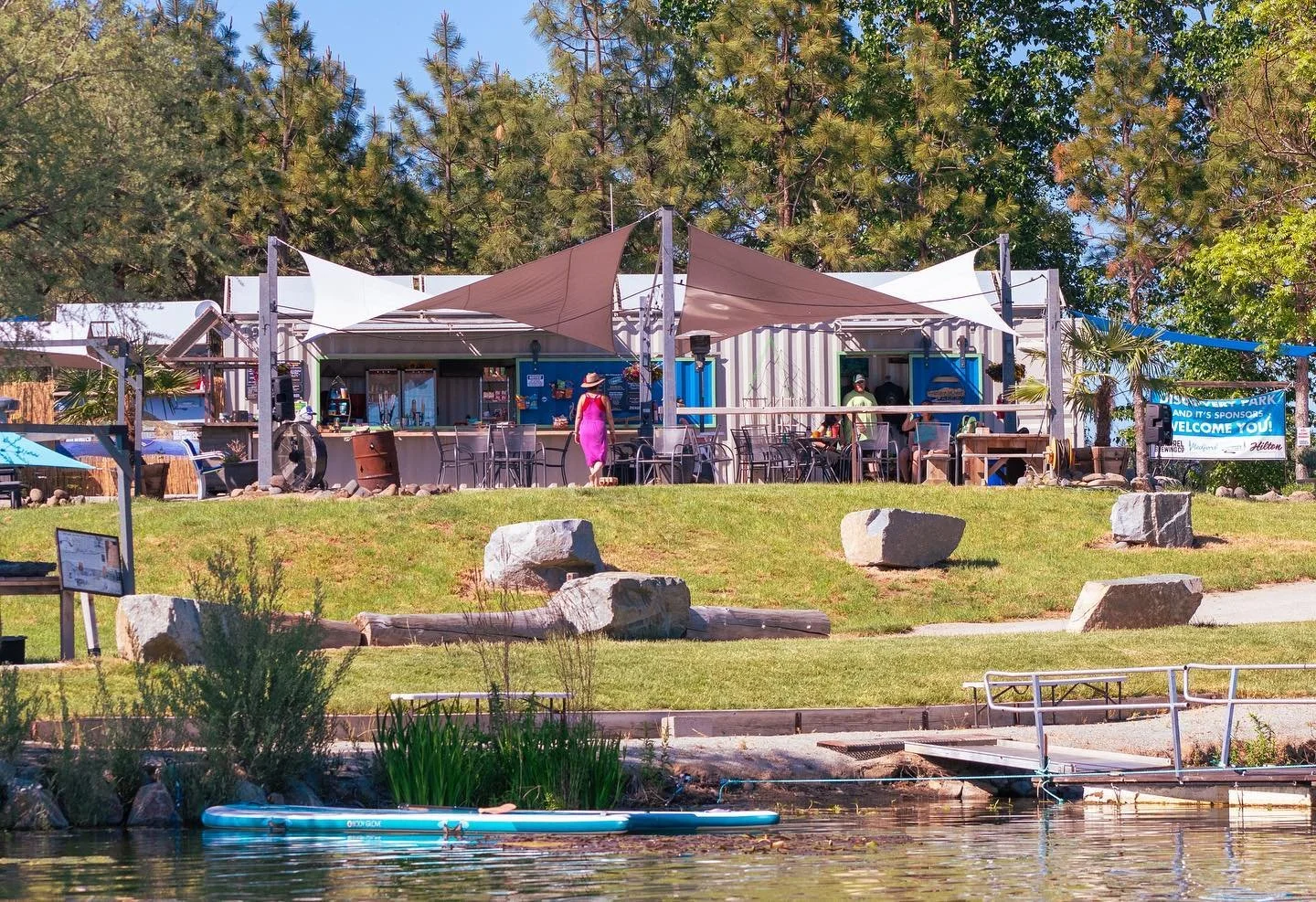 Stage Two - Discovery Park: We stop for lunch at Rogue Discovery Park. The menu at the Discovery Park kitchen offers BBQ bento bowls, burgers, salmon, salads, gyros and much more. There is also wine, beer, seltzer and cider on tap. The park is an incredible place for kids (and adults) to play - There is trophy bass fishing on the lake, a giant floating jungle gym / waterslide, volleyball, corn hole, horseshoes and of course, hammocks for those looking to take it easy.