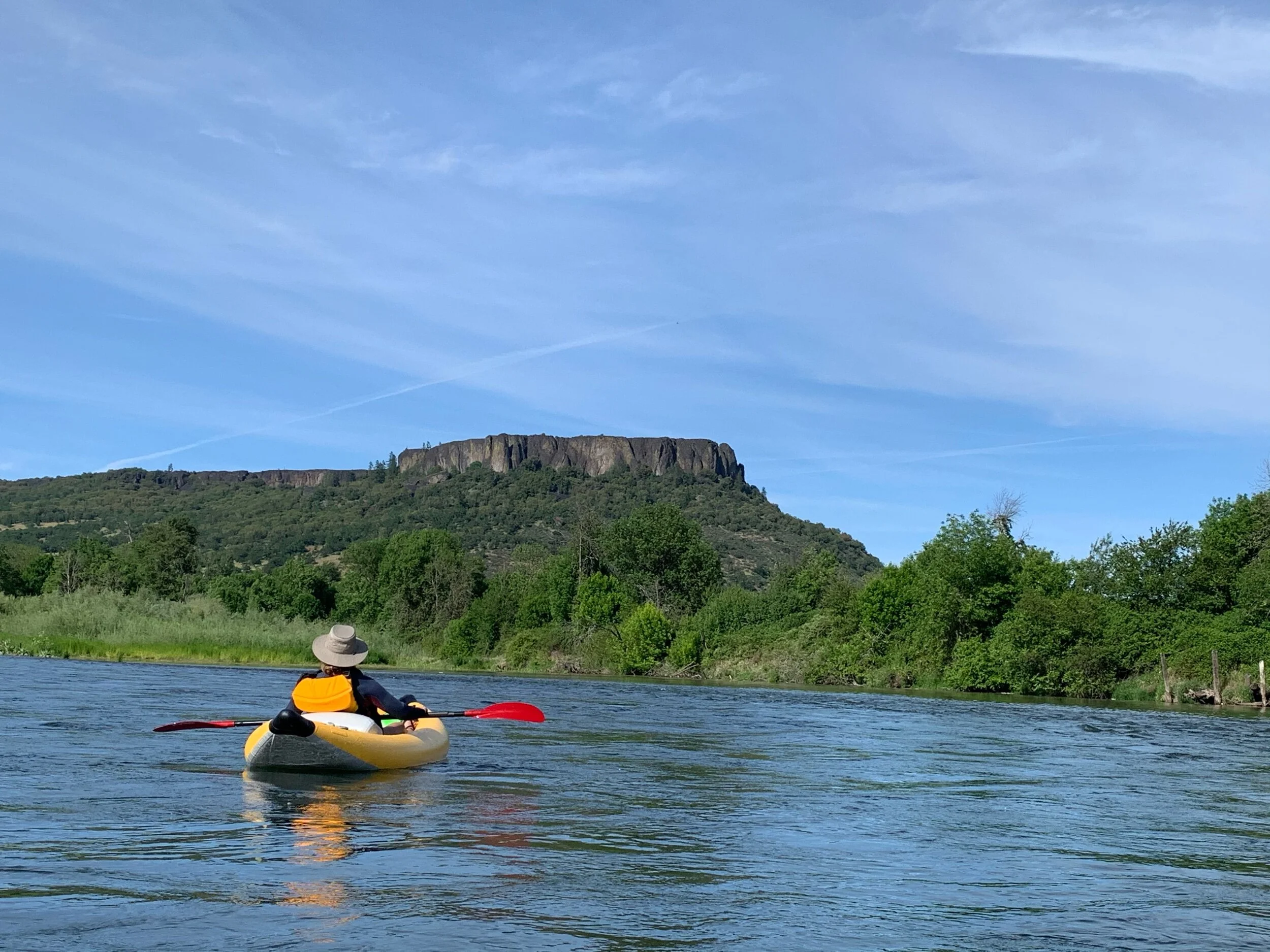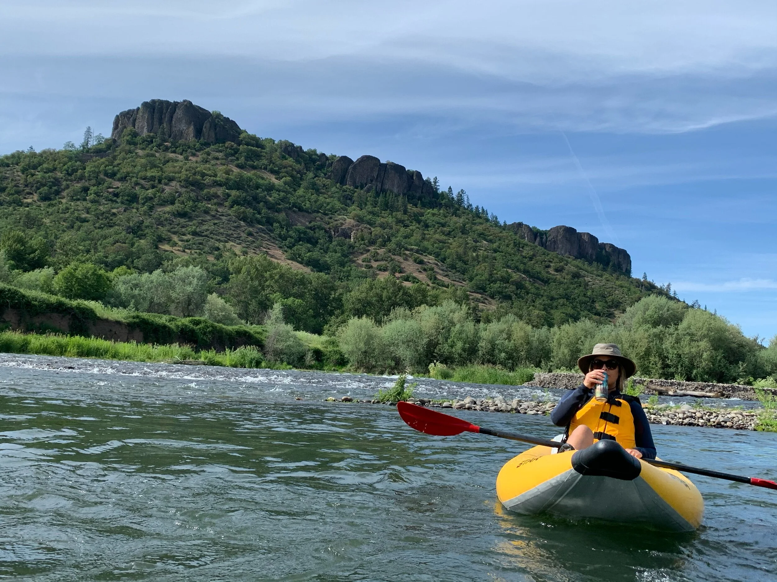 Stage One - Scenic Float: The excursion begins with a beautiful, peaceful float on the Rogue River, cruising by Upper and Lower Table Rock in your choice of a raft or inflatable kayak. The views of two of the largest mesas on the west coast are sure to astonish. Kayakers and rafters will get a feel for the river as we float by historical landmarks and wildlife (black tail deer, bald eagles, blue heron, river otters, beavers, & occasionally a jumping salmon or steelhead.)